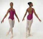Prima Soft came up with a beautiful square cut for the back of its leotards a few years ago, and its still gorgeously flattering today. This angular, low cut on a classic tank style, 501, keeps the leo from looking too much like a swimsuit, which is sometimes how a tank leo looks with a low scoop back. The pinched front of this leo is equally flattering.